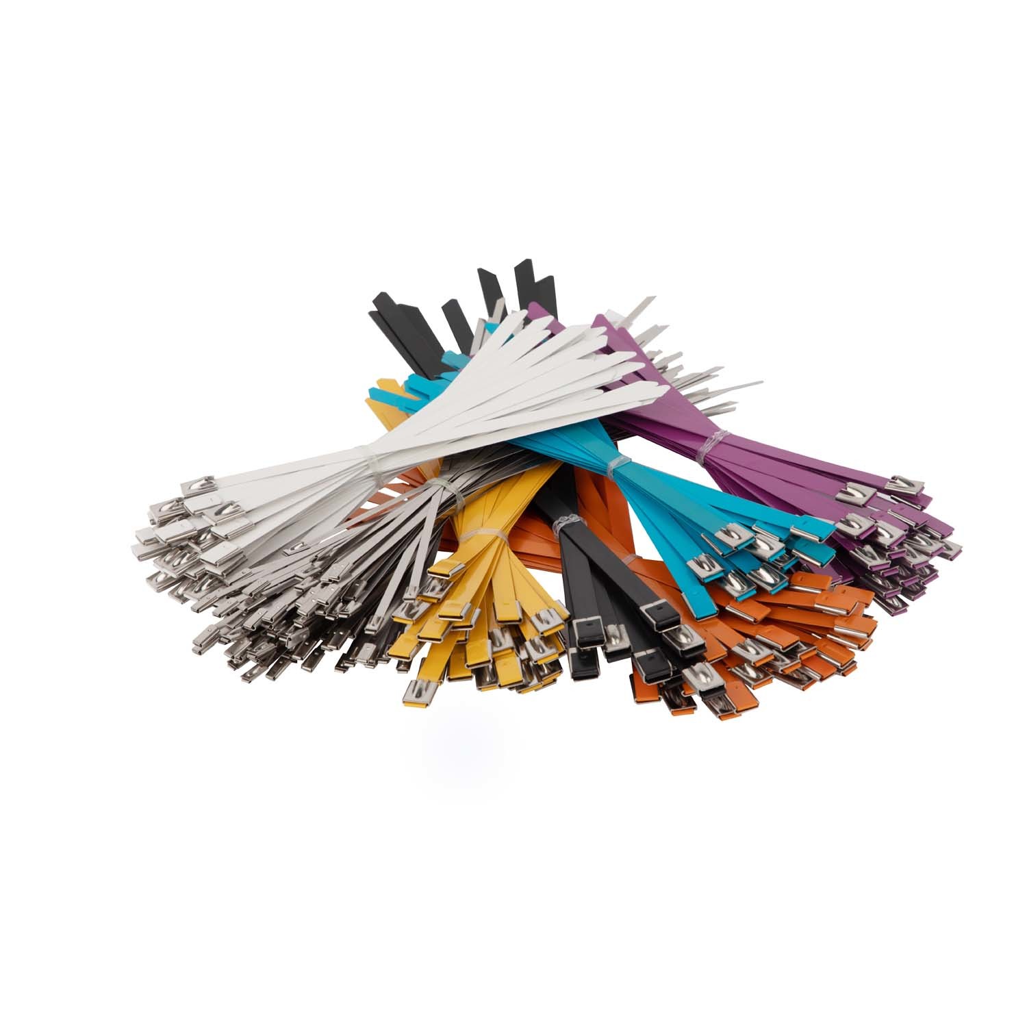 Las bridas de plástico de acero inoxidables revestidas tienen mecanismo de autoretención único permiten la operación fácil y rápida. El PVC completo o parcial cubrió el lazo proporciona el aislamiento y la protección superiores del cable.